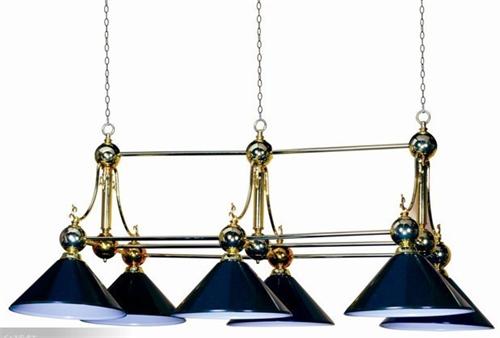 這款臺球燈飾看起來比較復雜,看起來也很舒服,采用吊鏈固定,鋼結構燈體設計,六頭,光源效果充足和光源散步均勻。很不錯的一款臺球燈飾,熱銷。具體需要可定制,定制價格按不同材質定價。
